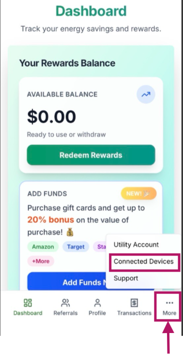 - Open the Meltek app and sign in to your account. From the bottom menu, tap More, then choose Connected Devices. Select Connect, and under Smart Thermostats, tap Connect again to begin the setup.